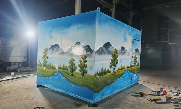 小型彩繪一體化污水處理設備是一種集污水處理功能與藝術(shù)化外觀設計于一體的創(chuàng)新型環(huán)保設備。其核心特點在于通過彩繪技術(shù)對設備外殼進行個性化定制,使其在滿足污水處理需求的同時,兼具美化環(huán)境的功能。